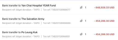 為確保救助能以有序、負責與透明的方式送達最需要的家庭,Bitget 已委託香港三家最具信譽的慈善機構執行 12,000,000 港元(約 1.54 百萬美元) 的全部捐款。所有款項均已完成撥付。